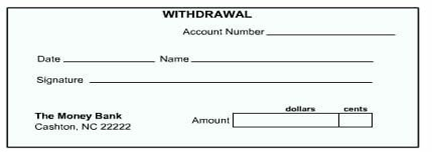 - A withdrawal slip typically requires you to write the _____________ of the recipient and the ____________ to be withdrawn.