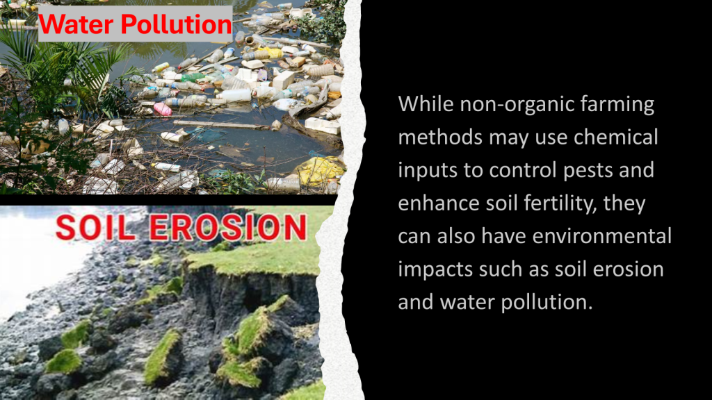 Non-organic farming, also known as conventional or industrial farming, relies heavily on synthetic inputs such as pesticides, fertilizers, and genetically modified organisms (GMOs) to maximize crop yields. While these methods may increase productivity in the short term, they can also have significant environmental consequences.