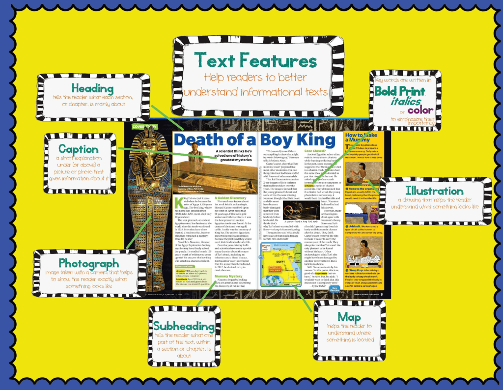 Text features play an important role in enhancing the readability and accessibility of written texts, providing readers with valuable visual cues and organizational aids that facilitate comprehension and engagement with the content.