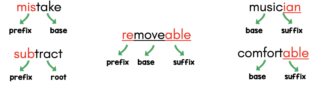 Word Families: Morphemes help establish connections between words that share similar meanings or origins. Words with common prefixes, suffixes, or root words often belong to the same word family, making it easier for students to learn related words and understand their relationships.