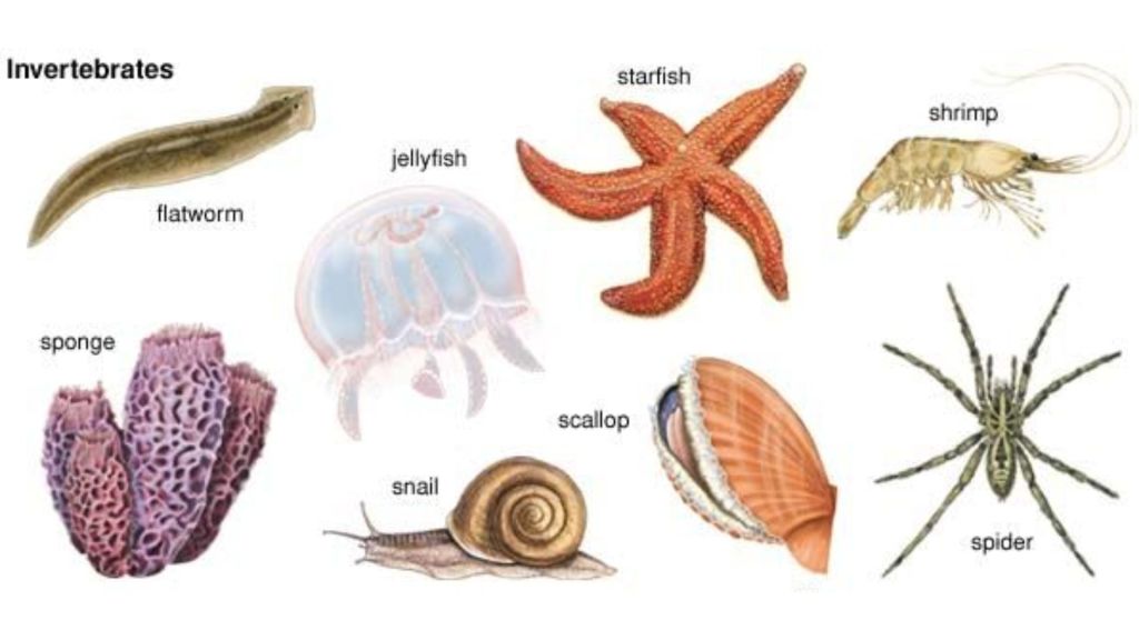 These animals donโt have a backbone. Instead, they may have soft bodies (like worms) or a hard outer shell for protection (like crabs and snails). Examples include insects, jellyfish, octopuses, and spiders.